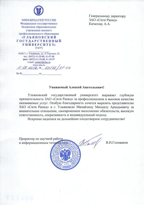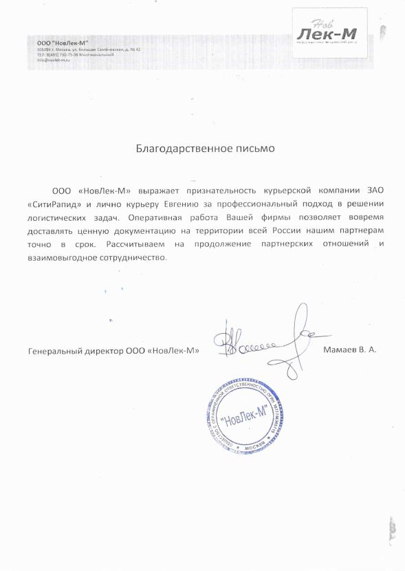 Быстро, вовремя, аккуратно. Передаю через Сити Экспресс документы, всегда все проходит без проблем. По срочному тарифу из Москвы в Новосибирск доставили за 1 день. Хочу выразить благодарность за высокое качество услуг, ответственность и соблюдение сроков.