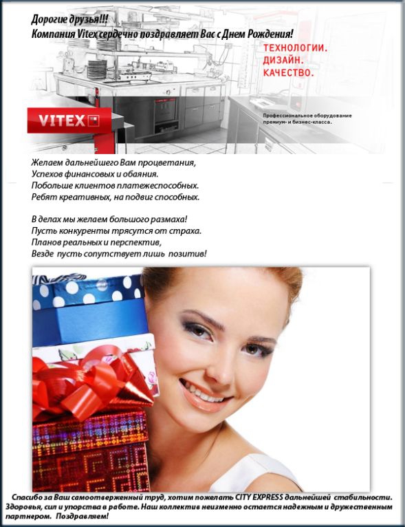 Благодарим компанию Сити Экспресс за плодотворное и беспроблемное сотрудничество уже на протяжении трех лет. Всегда получаем от менеджеров быструю обратную связь по всем вопросам относительно наших заказов. Отдельно хочется отметить высокое внимание ко всем пожеланиям со стороны клиента. Нам очень приятно видеть ответственных и добросовестных исполнителей.