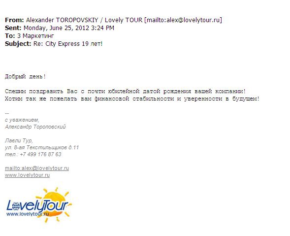 Благодарим компанию Сити Экспресс за плодотворное и беспроблемное сотрудничество уже на протяжении трех лет. Всегда получаем от менеджеров быструю обратную связь по всем вопросам относительно наших заказов. Отдельно хочется отметить высокое внимание ко всем пожеланиям со стороны клиента. Нам очень приятно видеть ответственных и добросовестных исполнителей.