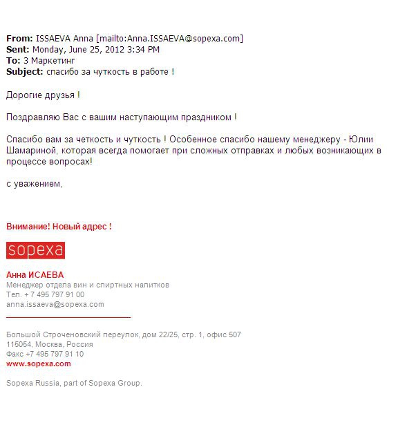 Хотела бы выразить Вам благодарность за оперативную и четко налаженную работу.