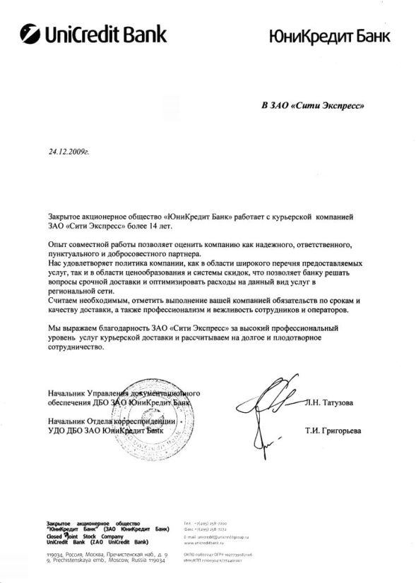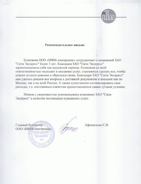 Быстро, вовремя, аккуратно. Передаю через Сити Экспресс документы, всегда все проходит без проблем. По срочному тарифу из Москвы в Новосибирск доставили за 1 день. Хочу выразить благодарность за высокое качество услуг, ответственность и соблюдение сроков.